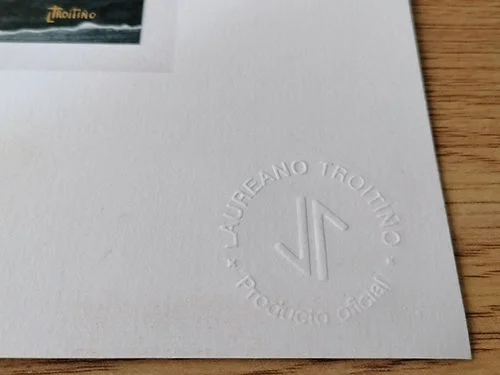 Cada ejemplar sale de mi taller con mi sello seco estampado en relieve en la esquina inferior. Un detalle de exclusividad que certifica su procedencia.